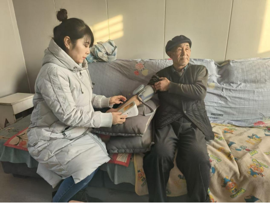 活动以“慢性病日常管理”为核心,直击居民最关心的健康痛点。团医院安医生带领医护团队携带血压计、血糖仪等便携式医疗设备,逐户开展上门服务。测量血压、检测血糖、记录健康数据,每一项流程都细致规范;针对检测结果异常的居民,安医生结合其年龄、生活习惯和病史,量身定制健康指导方案——提醒高血压患者按时服药、控制油盐摄入,为糖尿病患者讲解低糖饮食搭配技巧,还耐心示范正确的服药时间和方法,用通俗的语言把专业医疗知识讲清讲透。