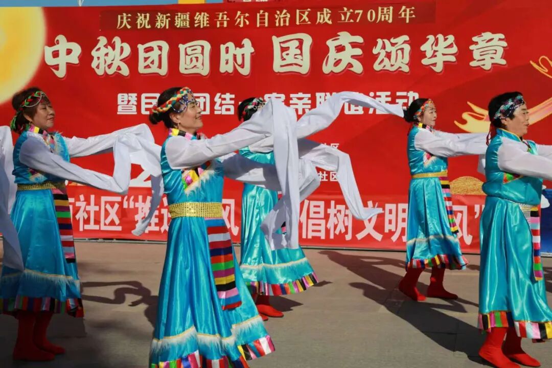 活动在全场观众与演员齐声合唱的《新疆是个好地方》中拉开帷幕。悠扬旋律饱含着居民群众对祖国母亲的赤诚祝福,对家乡新疆的无限热爱,瞬间点燃了现场的氛围。随后,各社区文艺队伍轮番登台献艺:舞蹈《万丈高楼平地起》跳出新时代的奋进姿态,《梦回拉吉美》《古丽亚尔》展现民族文化的独特魅力,《太阳出来喜羊羊》《苹果香》传递出生活的幸福喜悦……一个个精彩纷呈的节目,凝结着表演者的全情投入,以精湛技艺和深情演绎赢得阵阵喝彩,让整个会场成为欢乐的海洋。活动中设置的中秋、国庆习俗及移风易俗知识有奖问答环节,以互动形式加深了居民对传统文化与文明新风的理解,让节日氛围跟文化内涵相得益彰。
