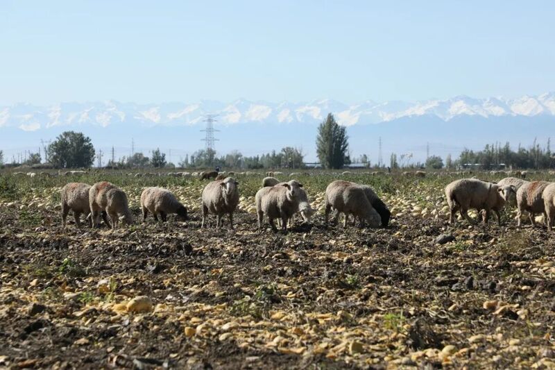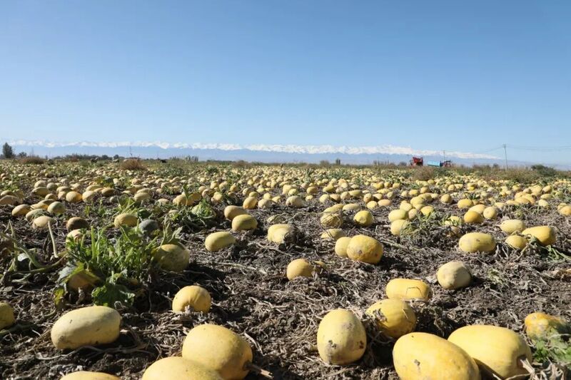此外,收割现场还能看到成群结队的羊群漫步在葫芦地里。“此前葫芦地里残余了大量植株藤蔓和杂草,给收割作业带来了不小困扰。这些羊被特意引入来啃食清除这些植物,给收割作业带来了便利。”一连农户刘开明介绍道。