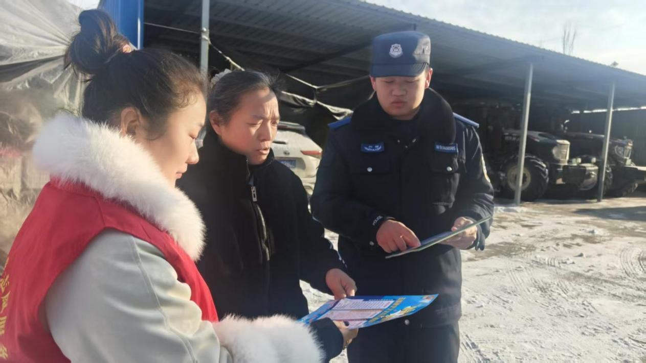 为切实守护辖区居民的财产安全与出行安全,12月11日,105团头道湾社区联合辖区警务室辅警、交警,在辖区集市开展反诈防骗及雪天出行安全主题宣传活动,将实用安全知识送到居民身边。