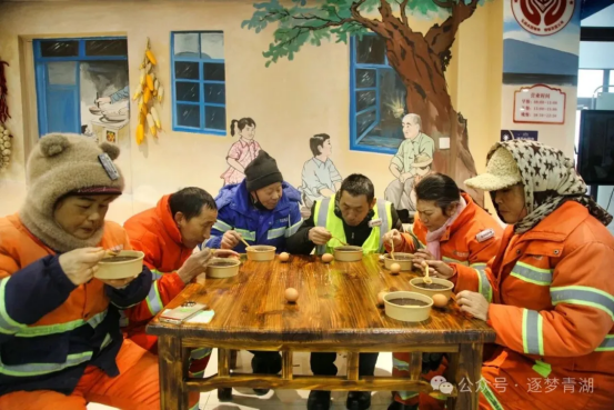 两场活动中,社区不仅为现场参与的居民送上了节日的关怀,更没有忘记坚守在岗位上的一线工作者。天山南路社区的工作人员向辖区环卫工人致以敬意,青湖南路社区则将热腾腾的腊八粥与腌制好的腊八蒜,逐一送至坚守岗位的物业保安、保洁人员手中,感谢他们的默默付出与守护。