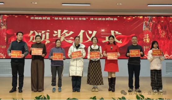 2月10日,青湖路街道第十三届群众文化艺术节迎新春联欢会举行“郁见青湖 冬日奇缘”冰雪创意挑战赛颁奖仪式。