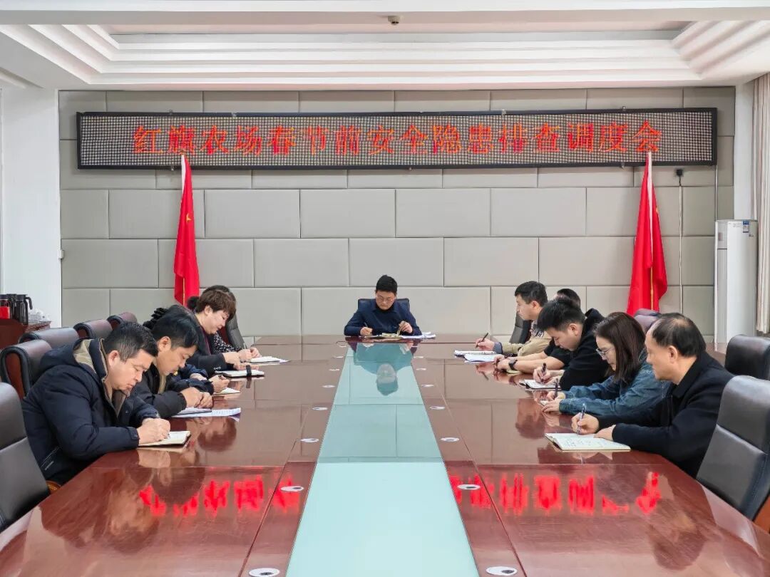 为切实做好春节前安全生产工作,有效防范和遏制各类安全事故发生,为全场职工群众营造平安、祥和的节日氛围,1月29日,红旗农场召开春节前安全隐患排查调度会,党委常委、武装部部长蒋建凯主持会议,应急管理和生态保护办公室、经济发展办公室、平安和法治建设办公室、城镇管理中心等相关部门及社区负责人参会。