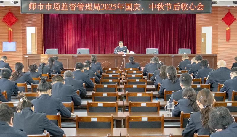 国庆、中秋“双节”假期结束后,为迅速引导全体干部职工调整工作状态、收心归位,第六师五家渠市市场监管局第一时间组织召开节后收心会,局党组书记、局长宋保勇主持会议并作动员部署讲话,全面总结假期监管工作成效,部署下一阶段重点工作。局领导班子成员,各科室、直属事业单位及基层所队参加会议。