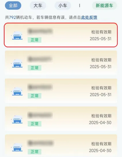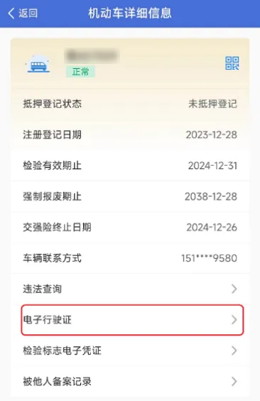 单位车辆切换到单位用户版后,在首页下方点击机动车列表项后,进入“机动车详细信息”页面,点击【电子行驶证】进行查看。