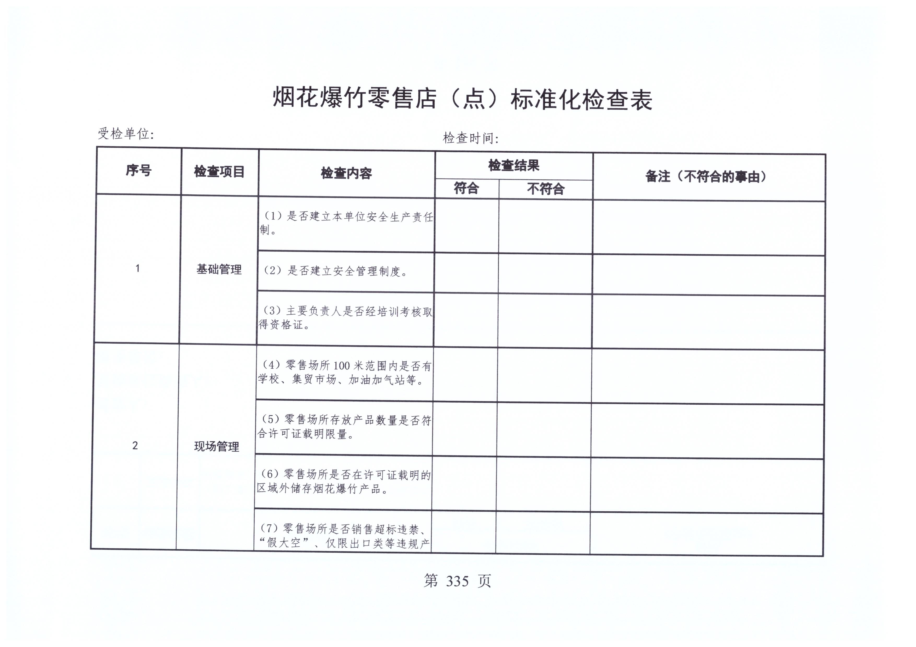 烟花爆竹零售点检查标准
