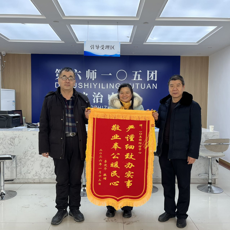 “我真的没想到这件事在105团综治中心这里得到了圆满解决,能把这7000多块钱要回来,真真切切地为我挽回了经济损失。”赠送锦旗的李某激动地表示。