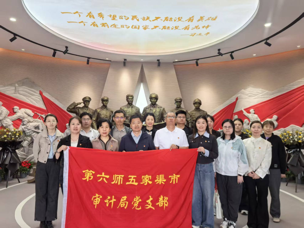 红色教育铸魂,汲取奋进力量。活动尾声,全体党员前往第六师五家渠市烈士纪念馆,在庄严肃穆的氛围中缅怀革命先烈、接受红色洗礼,从革命先辈的奋斗历程中汲取精神力量,进一步坚定为民造福、务实干事的服务导向,凝聚推动审计工作高质量发展的强大动力。