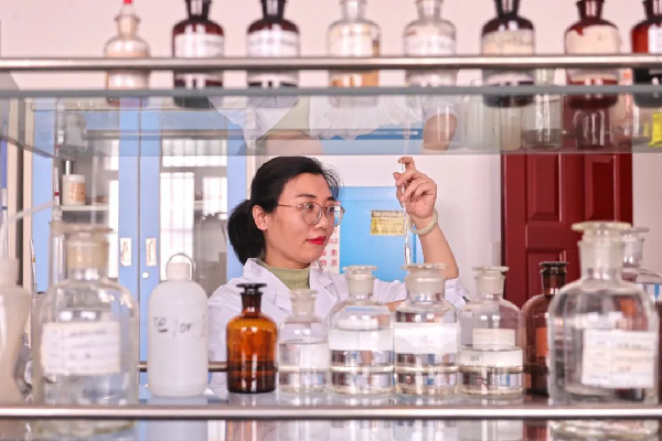 在信发集团新疆公司的化学操作室,工作人员正在对电解铝进厂原材料进行化学分析。