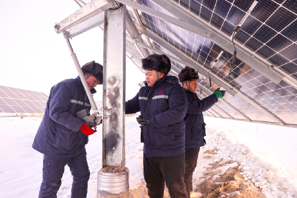 1月29日,在信发集团新疆公司光伏发电项目的集中控制室,工作人员正在记录数据。项目装机容量880MW,项目总投资为48亿元。目前,项目主体已建设完成,预计今年并网发电。李华北 摄