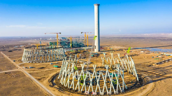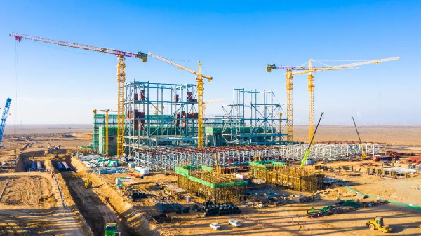 2023年11月16日,在兵团准东产业园区山东信发集团2×60万千瓦煤电机组项目建设现场,工人们加紧施工。李华北 摄