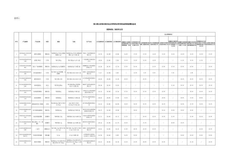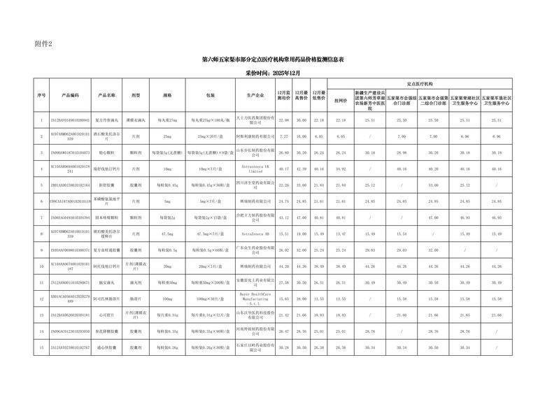 为进一步做好定点医药机构的药品价格管理工作,完善药品价格市场竞争机制,保障群众对药品价格的知情权、监督权、选择权,建立公开、公正、规范、有序的药品零售市场环境,第六师医疗保障局开展常用药品价格监测工作,监测范围涉及销量较大、医保报销次数多、慢性病患者常用药品。现对2025年12月监测结果进行公示。