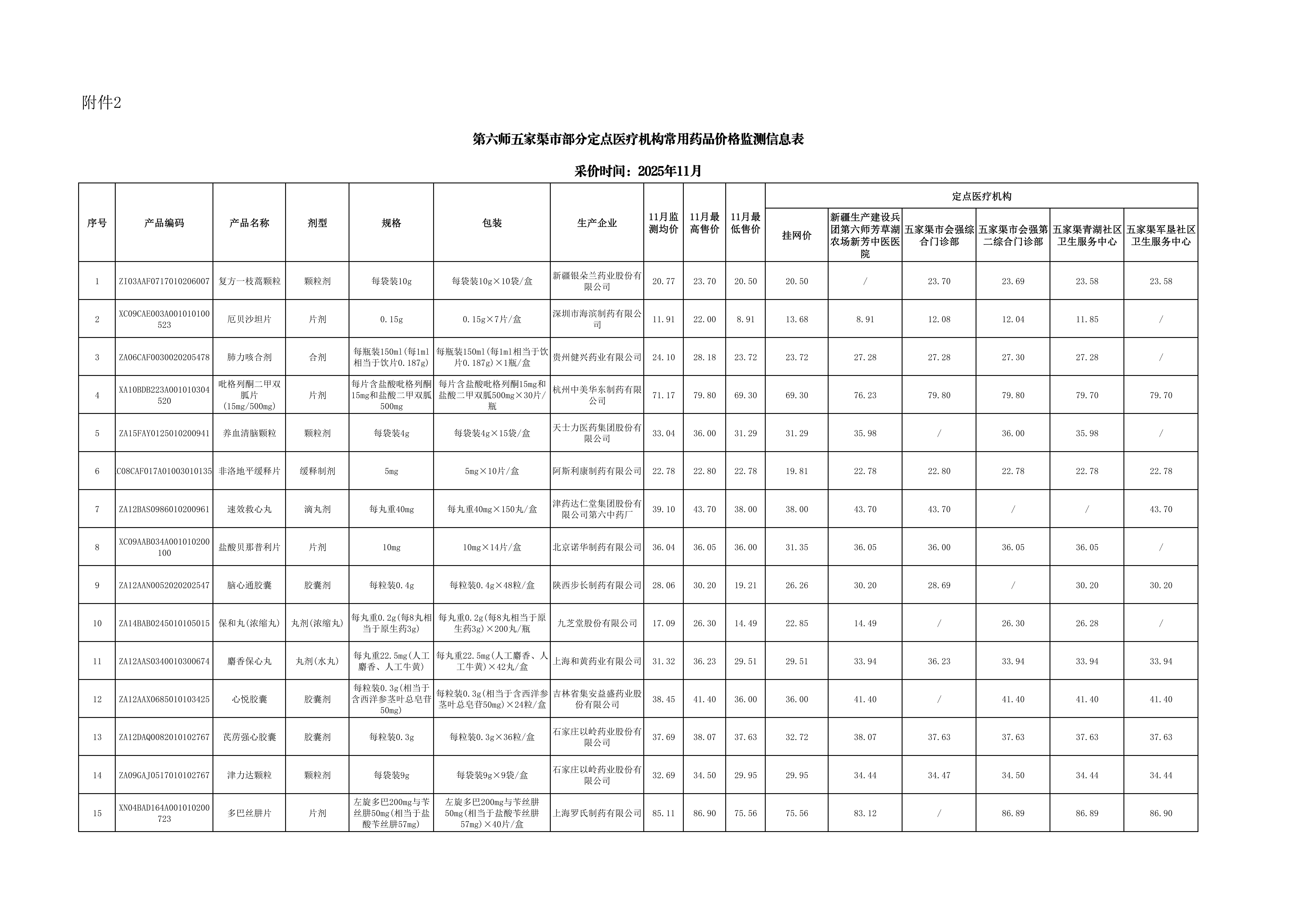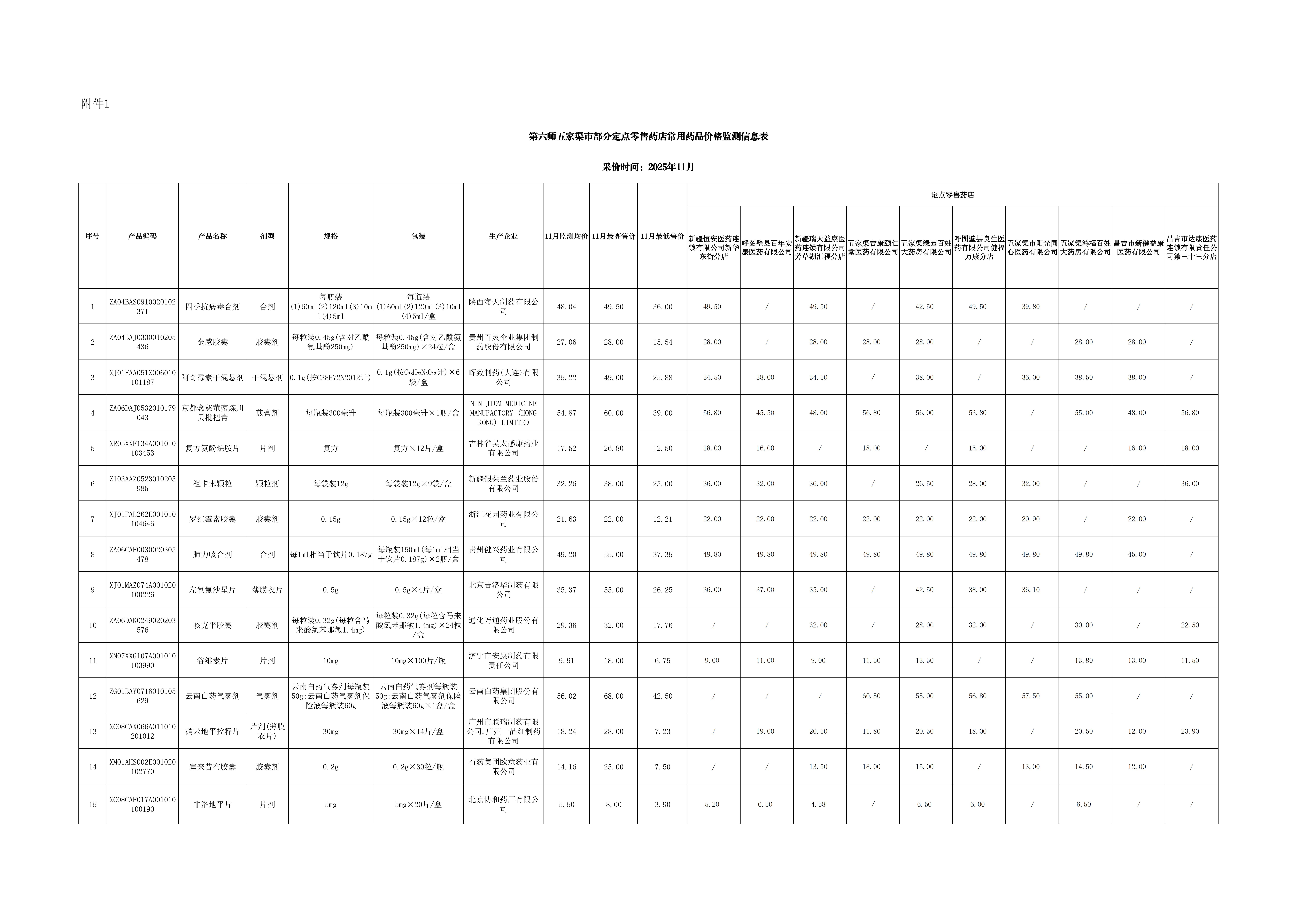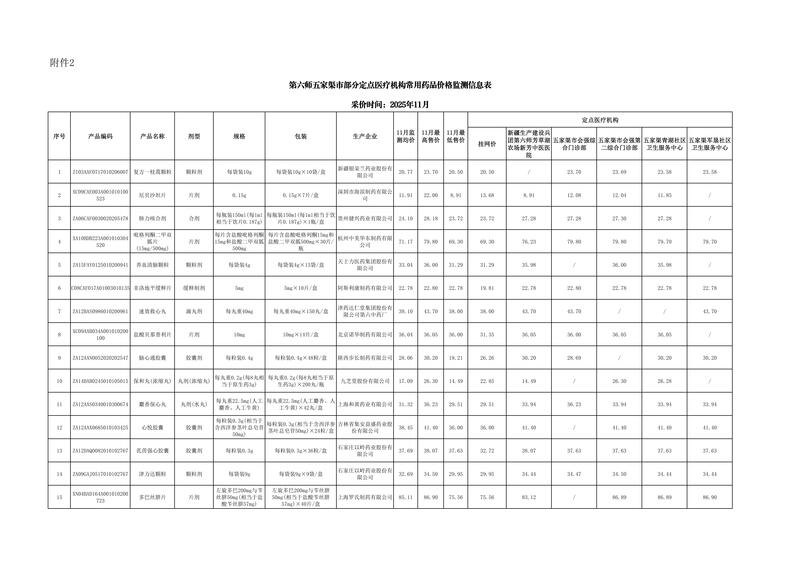 为进一步做好定点医药机构的药品价格管理工作,完善药品价格市场竞争机制,保障群众对药品价格的知情权、监督权、选择权,建立公开、公正、规范、有序的药品零售市场环境,第六师医疗保障局开展常用药品价格监测工作,监测范围涉及销量较大、医保报销次数多、慢性病患者常用药品。现对2025年11月监测结果进行公示。